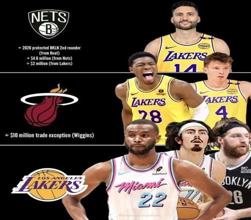 湖人得到維金斯、小海梅-哈克斯和德魯-蒂米;熱火得到八村塁、克內(nèi)克特和價(jià)值1000萬美元的交易特例;籃網(wǎng)得到克萊伯、26年受保護(hù)的次輪簽、460萬美元和200萬美元。