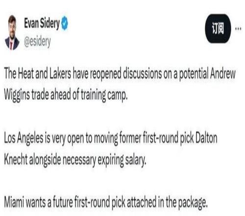 福布斯記者Sidery報(bào)道,湖人和熱火已經(jīng)在訓(xùn)練營開始前重啟了關(guān)于維金斯的交易討論。