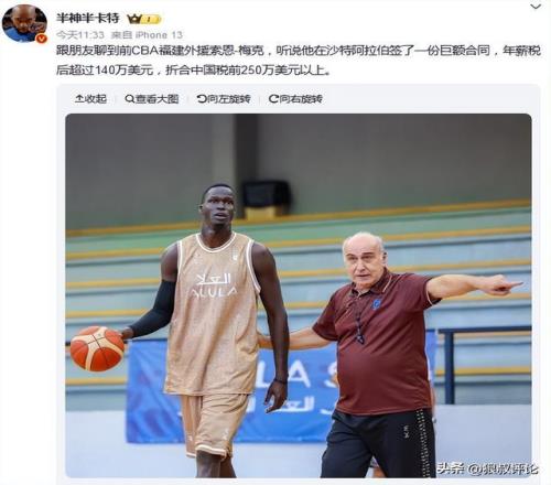 根據(jù)媒體人“半神半卡特”透露:他在沙特阿拉伯簽了一份巨額合同,年薪稅后超過140萬美元,折合中國稅前250萬美元以上。