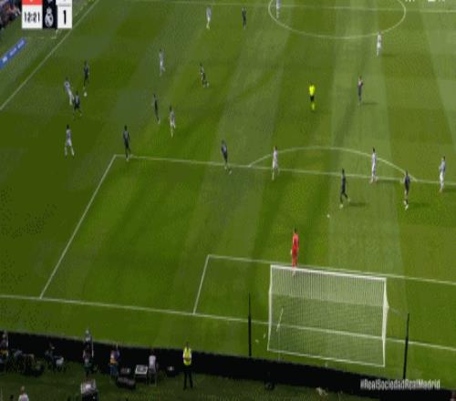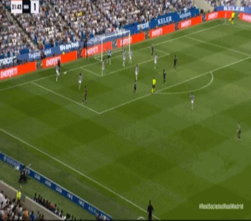 皇馬是前三輪唯二保持不敗的兩支球隊(duì)之一,今天作客阿諾埃塔球場(chǎng),皇馬延續(xù)著贏球勢(shì)頭。開(kāi)場(chǎng)后皇馬的進(jìn)攻就很高效,僅僅1分鐘,皇馬快速反擊,姆巴佩突入禁區(qū)右側(cè)倒三角回傳,居萊爾禁區(qū)線(xiàn)上推射空門(mén)得手,只是姆巴佩插上時(shí)稍稍越位在先,進(jìn)球被吹掉。第11分鐘,皇家社會(huì)前場(chǎng)右側(cè)進(jìn)攻受阻,洛佩茲拿球選擇回傳,不料姆巴佩高速插上,完全甩開(kāi)皇家社會(huì)的兩個(gè)中后衛(wèi)卡爾跟祖貝迪亞將球斷走,姆巴佩突入禁區(qū)內(nèi)一步單刀冷靜兜射,皮球 應(yīng)聲入網(wǎng),皇馬1:0取得良好開(kāi)局。