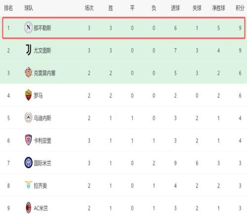 這場比賽過后,那不勒斯憑借一個凈勝球的優勢,力壓同樣9分的尤文,排名意甲第一。在此之前,尤文主場4-3絕殺國米,本賽季同樣全勝。相比之下,國米就慘了,輸給尤文之后,他們3輪過后才3分在手,本賽季意甲爭冠,恐怕沒國米什么事了。