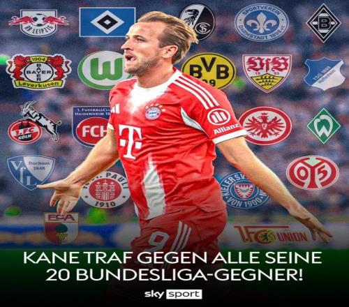 據德天空統計,截止目前凱恩在德甲賽場共與20支球隊交手,全部取得進球。