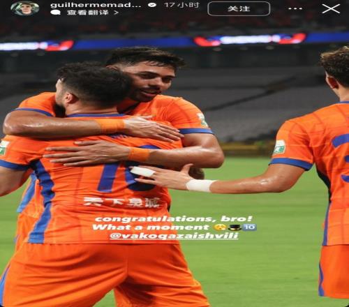 直播吧9月13日訊 中超第24輪焦點戰,山東泰山客場3-3戰平上海申花。泰山外援瓦科-卡扎伊什維利貢獻超神表現,連續7場比賽破門的同時,連場上演帽子戲法,近2場比賽打進7球。上輪泰山6-0國安的比賽中,卡扎伊什維利4射1傳。泰山外援馬德魯加賽后更新社媒,曬出與卡扎的擁抱照并配文祝賀他的表現:“祝賀你,兄弟!多么精彩的表現!@卡扎伊什維利”