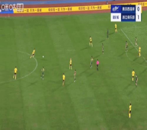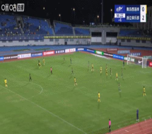 下半場補時6分鐘。最終全場比賽結(jié)束,青島西海岸0-2浙江隊。