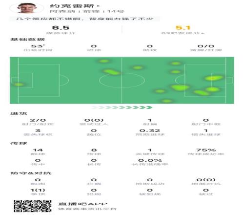 直播吧09月13日訊 英超第4輪,阿森納半場1-0領先諾丁漢森林,阿森納前鋒約克雷斯首發出戰,上半場數據如下。約克雷斯上半場數據:2次射門;0次射正;0次過人;3次丟失球權;14次觸球;8次傳球;傳球成功率75%
